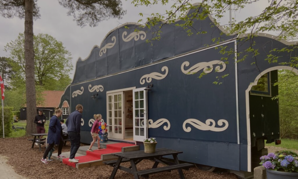 En gammel cirkusvogn som butik, fyldt med ting som man kan bruge ude i skoven og med fokus på bæredygtighed ind i legetøjet. Der er især fokus på at man som forældre kan holde ud at se på legetøjet.